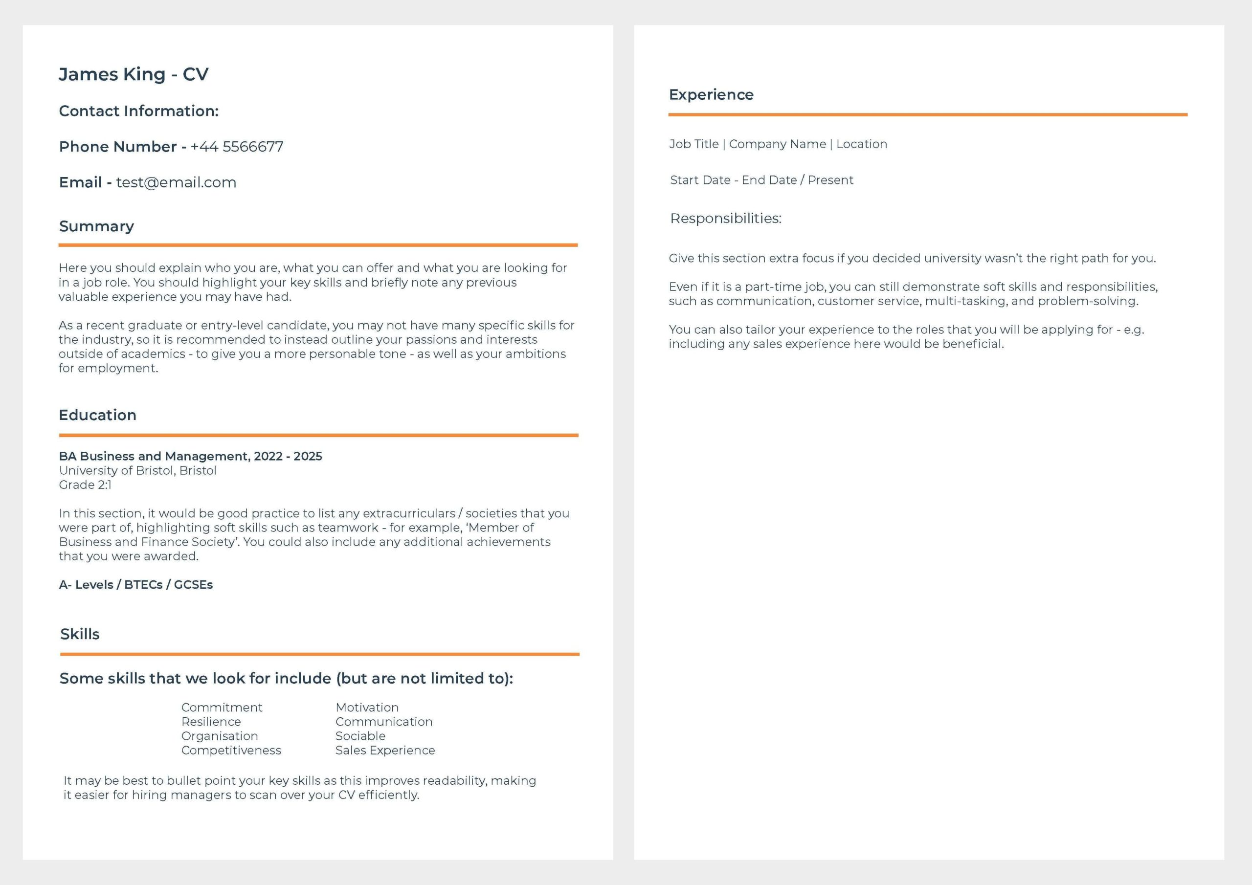 Like the look of our sample CV? Download a free template today, created by industry experts to help you secure your next role.